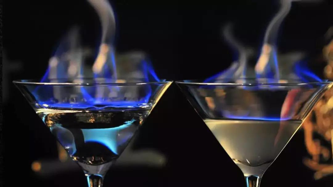 把酒倒入透明玻璃杯中,點燃。等火焰自然熄滅,酒體冷卻后觀察酒體變化。